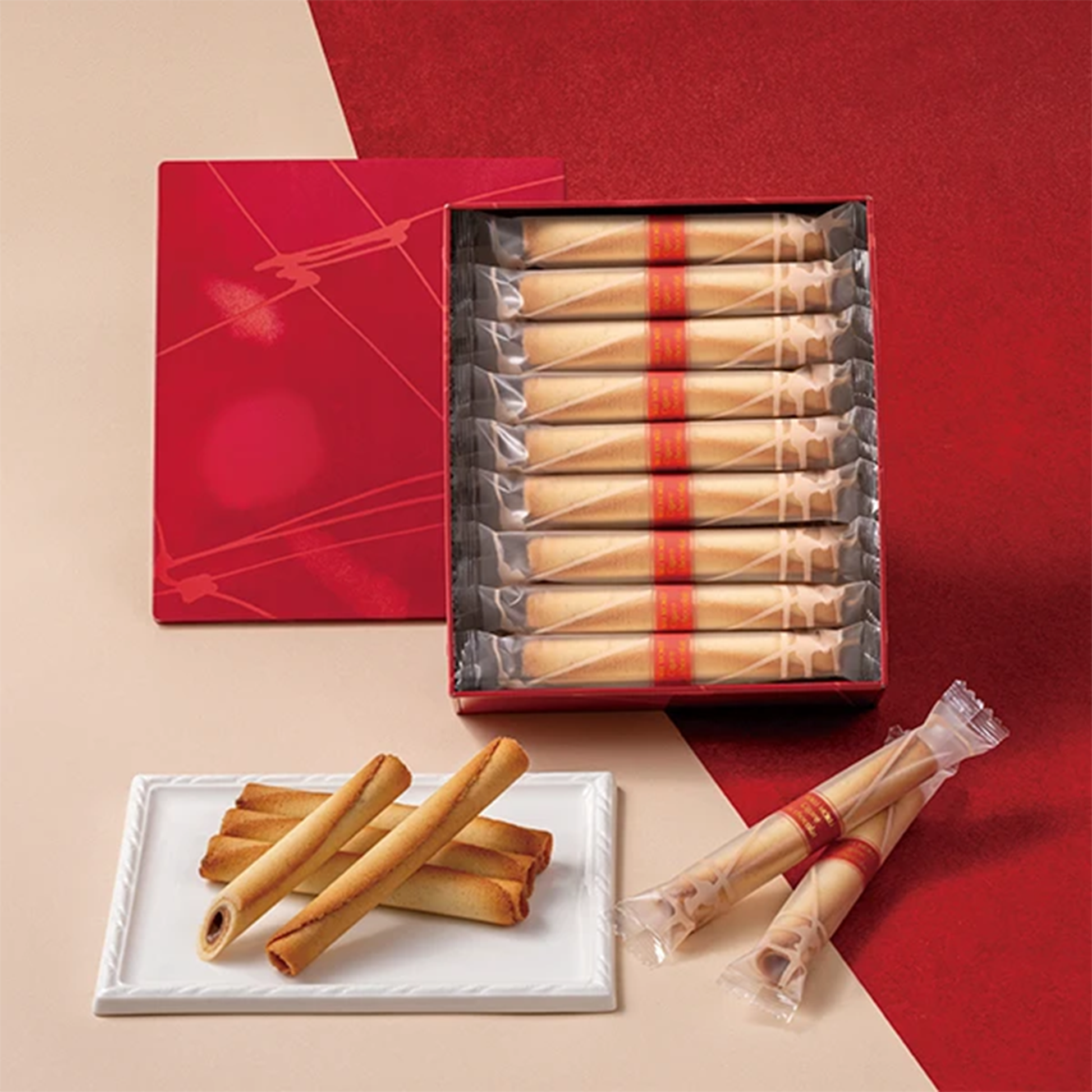 A rich, buttery dough is baked to perfection, rolled up, and filled with smooth milk chocolate. Its crisp texture and gentle sweetness spread softly in your mouth.